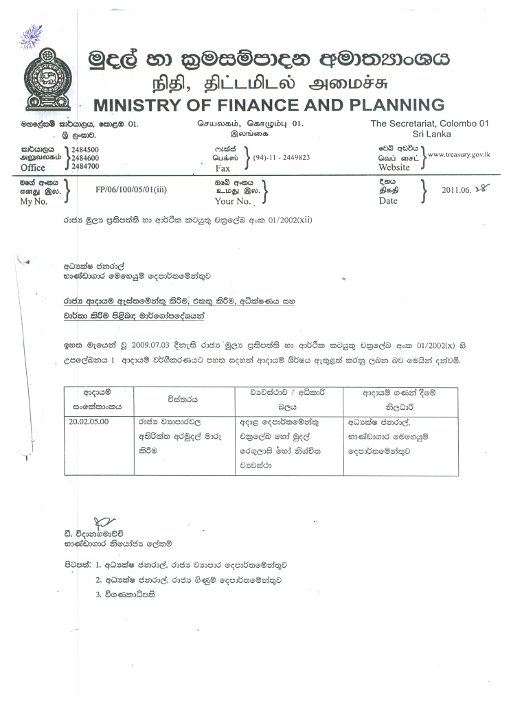 28-06-201101/2002 (xii)රාජ්‍ය ආදායම ඇස්තමේන්තු කිරීම, එකතු කිරීම, අධීක්ෂණය සහ වාර්තා කිරීම පිළිබඳ මාර්ගෝපදේශ